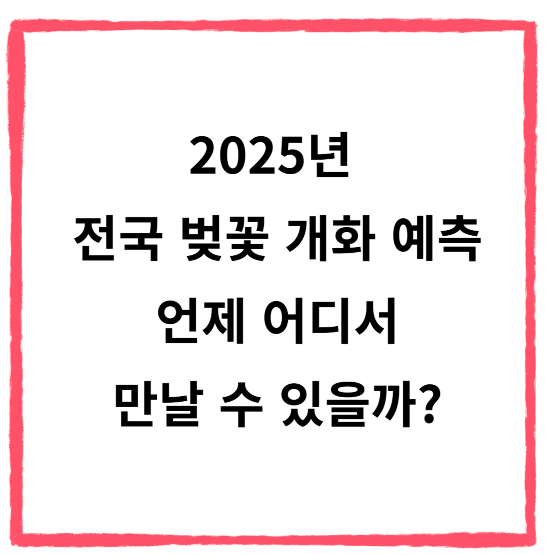 2025년 벚꽃 개화 시즌은 전국적으로 3월 중순부터 4월 초까지 이어질 것으로 예상됩니다. 원하는 지역의 개화 시기를 미리 확인하고, 벚꽃 명소와 함께 여행 계획을 세우면 더욱 즐거운 봄을 맞이할 수 있습니다.