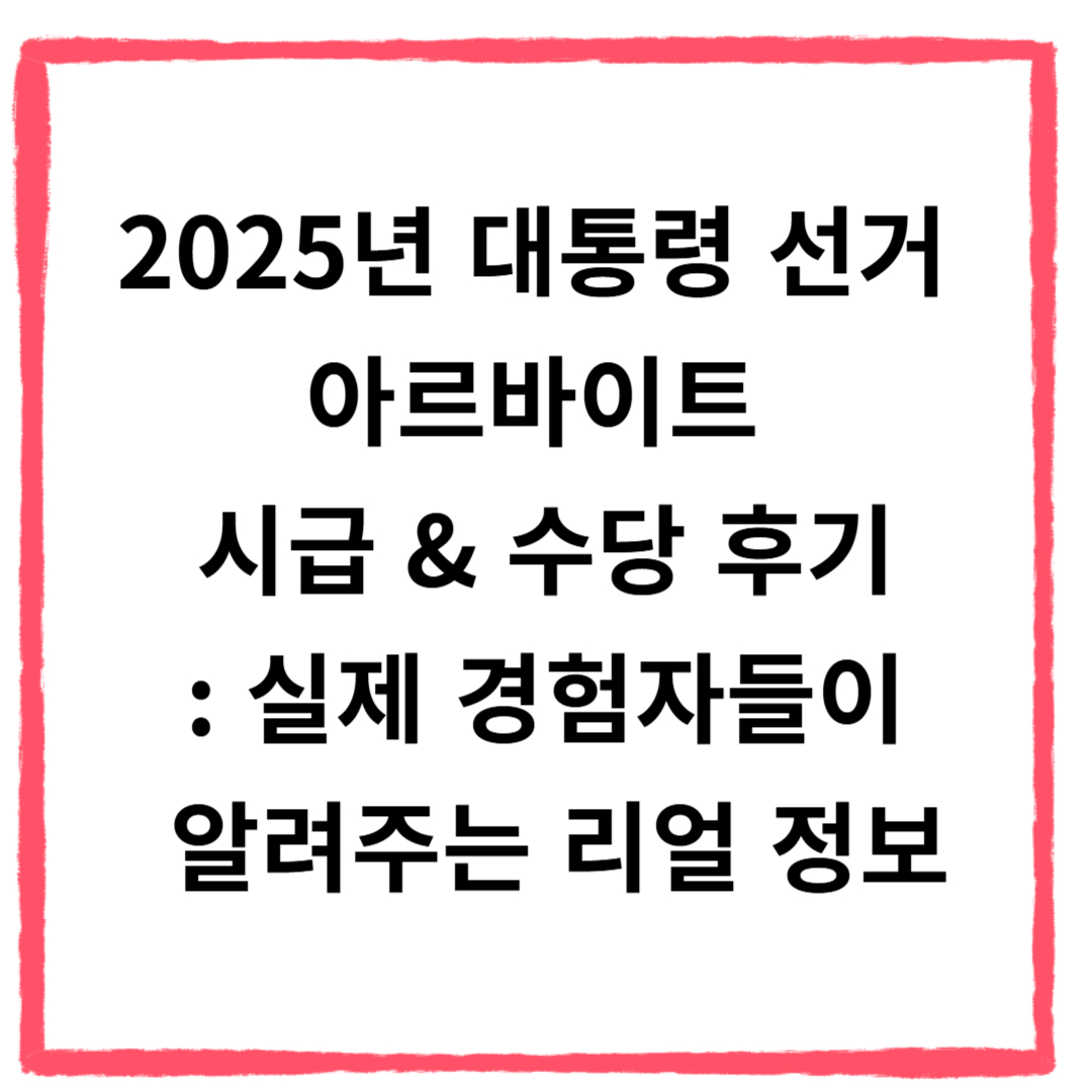 2025년 대통령 선거 아르바이트 시급 & 수당 후기: 실제 경험자들이 알려주는 리얼 정보
